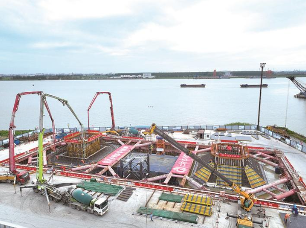 昨天,由中國鐵建大橋局承建的張靖皋長江大橋北航道橋北索塔承臺混凝土澆筑施工順利完成,成為全橋首個(gè)澆筑完成的主塔承臺,標(biāo)志著大橋建設(shè)正式進(jìn)入鋼塔施工階段。 記者許叢軍