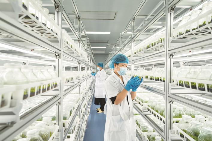 昨日,位于海安市雅周現(xiàn)代農(nóng)業(yè)園的南通科騰生物科技有限公司內(nèi),工人們正忙著培育蝴蝶蘭的組培苗。據(jù)了解,這是一家集科研、種植于一體的專業(yè)從事植物組培的智能化植物工廠,采用自然光與燈光輔助進(jìn)行組培育種,預(yù)計(jì)年生產(chǎn)蝴蝶蘭、朱頂紅、藍(lán)莓組培瓶苗100多萬株。 翟慧勇 王春燕攝