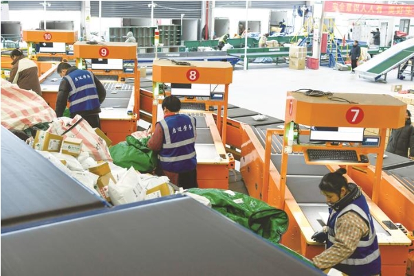 近日,海安郵政轉(zhuǎn)運中心內(nèi),快遞分揀員正在分揀快遞,保證節(jié)前準(zhǔn)確送達(dá)。春節(jié)前快遞運輸迎來高峰,該中心當(dāng)天處理量高達(dá)12萬件,比平時增加近35%。