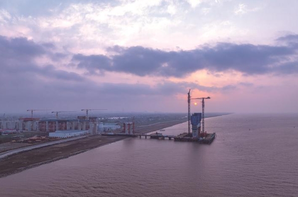這是昨天清晨建設中的崇啟公鐵長江大橋。蛇年春節(jié)長假剛過,滬渝蓉高速鐵路站前V標崇啟公鐵長江大橋、崇明特大橋等施工現(xiàn)場多點開工,全力奮戰(zhàn)“開門紅”。