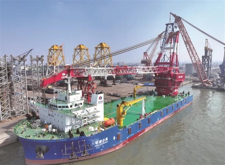 2025年2月24日拍攝的由上海振華重工南通振華重裝承建的中國電建3600噸全回轉(zhuǎn)起重船“電建志高”號。該船完工亮相,即將迎來交付節(jié)點。