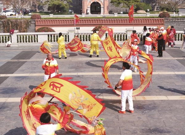 1日,健身愛(ài)好者在崇川區(qū)鐘樓廣場(chǎng)舞“彩帶龍”。市區(qū)多個(gè)健身群體常態(tài)化利用“彩帶龍”健身休閑,成為廣場(chǎng)的一道美麗風(fēng)景線(xiàn)。 記者 許叢軍攝