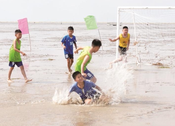 來自常州、泰州、揚州等全省8個城市的100名青少年足球健兒在3天的賽程中挑戰(zhàn)獨特的灘涂競技,充分享受了泥潭中奔跑的酣暢淋漓。