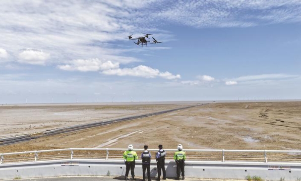 14日,民警、輔警操控?zé)o人機(jī)在沿海灘涂巡防。連日來(lái),海安市公安局濱海新區(qū)派出所加強(qiáng)沿海區(qū)域巡邏防控,開(kāi)展應(yīng)急救援演練,宣傳灘涂安全常識(shí),及時(shí)勸阻私自下海人員,消除安全隱患,守護(hù)群眾安全。 周強(qiáng)攝