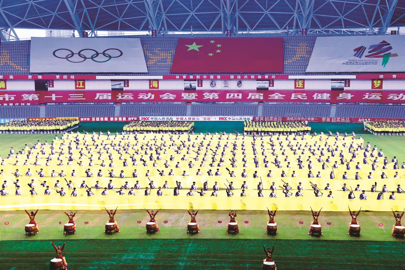 昨天,南通市第十三屆運(yùn)動(dòng)會(huì)暨第四屆全民健身運(yùn)動(dòng)會(huì)在南通體育會(huì)展中心體育場(chǎng)開幕。本屆市運(yùn)會(huì)以“激情江海、活力南通”為主題,全面檢閱近年來我市體育事業(yè)發(fā)展成果。 記者徐培欽