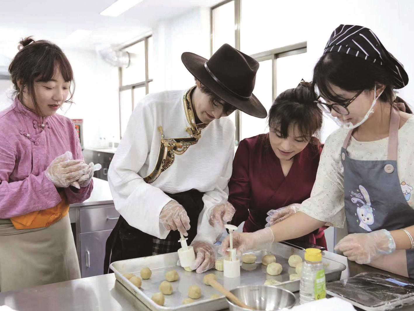 昨天,南通科院食品藥品學(xué)院組織藏族新生在食品專業(yè)師生的指導(dǎo)下,以制作手工月餅的方式,了解中華傳統(tǒng)文化,共話傳統(tǒng)民俗,迎接中秋的到來(lái)。 馮凱敏