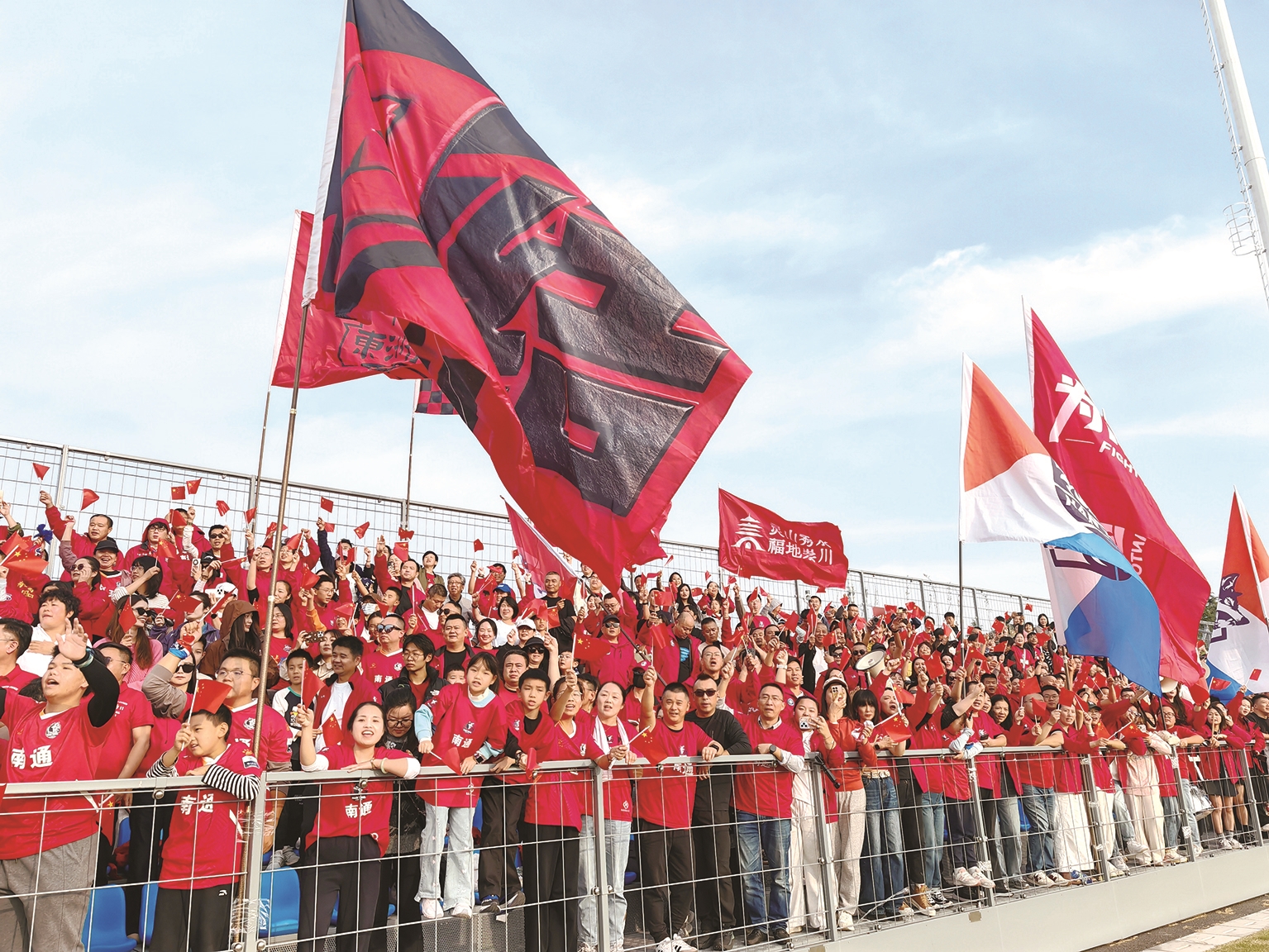 常規(guī)賽10勝2平、1/4決賽5∶0戰(zhàn)勝淮安隊(duì)、半決賽點(diǎn)球4∶2戰(zhàn)勝無(wú)錫隊(duì)、總決賽斬獲亞軍……沿著逐夢(mèng)通道,穿過(guò)四道拱門(mén),步入一號(hào)球場(chǎng),南通隊(duì)在《光榮屬于南通》的激昂旋律中逐一亮相,贏得了雷鳴般的掌聲和歡呼聲。