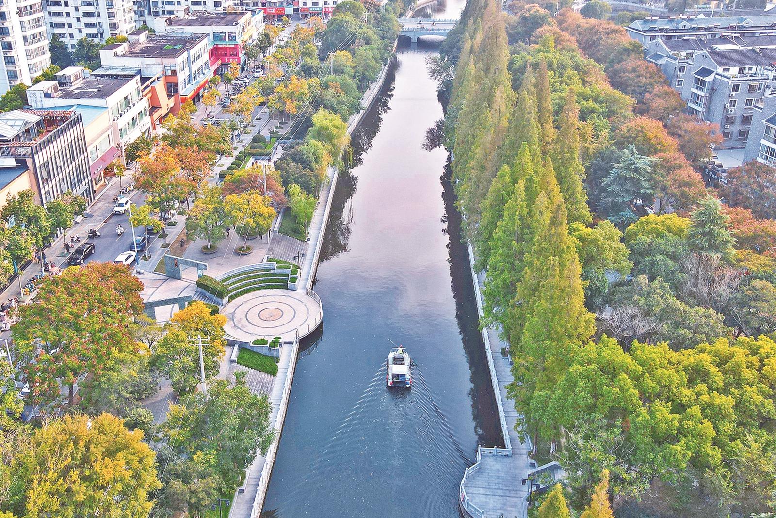 昨天,保潔員在如皋外城河水面上打撈漂流物。近日,河道管護(hù)迎來(lái)繁忙期。如皋嚴(yán)格落實(shí)河湖長(zhǎng)制,對(duì)全長(zhǎng)6.4公里的內(nèi)、外護(hù)城河加大巡河、保潔頻次,營(yíng)造河暢、水清、岸綠、景美的生態(tài)環(huán)境。 吳樹建攝