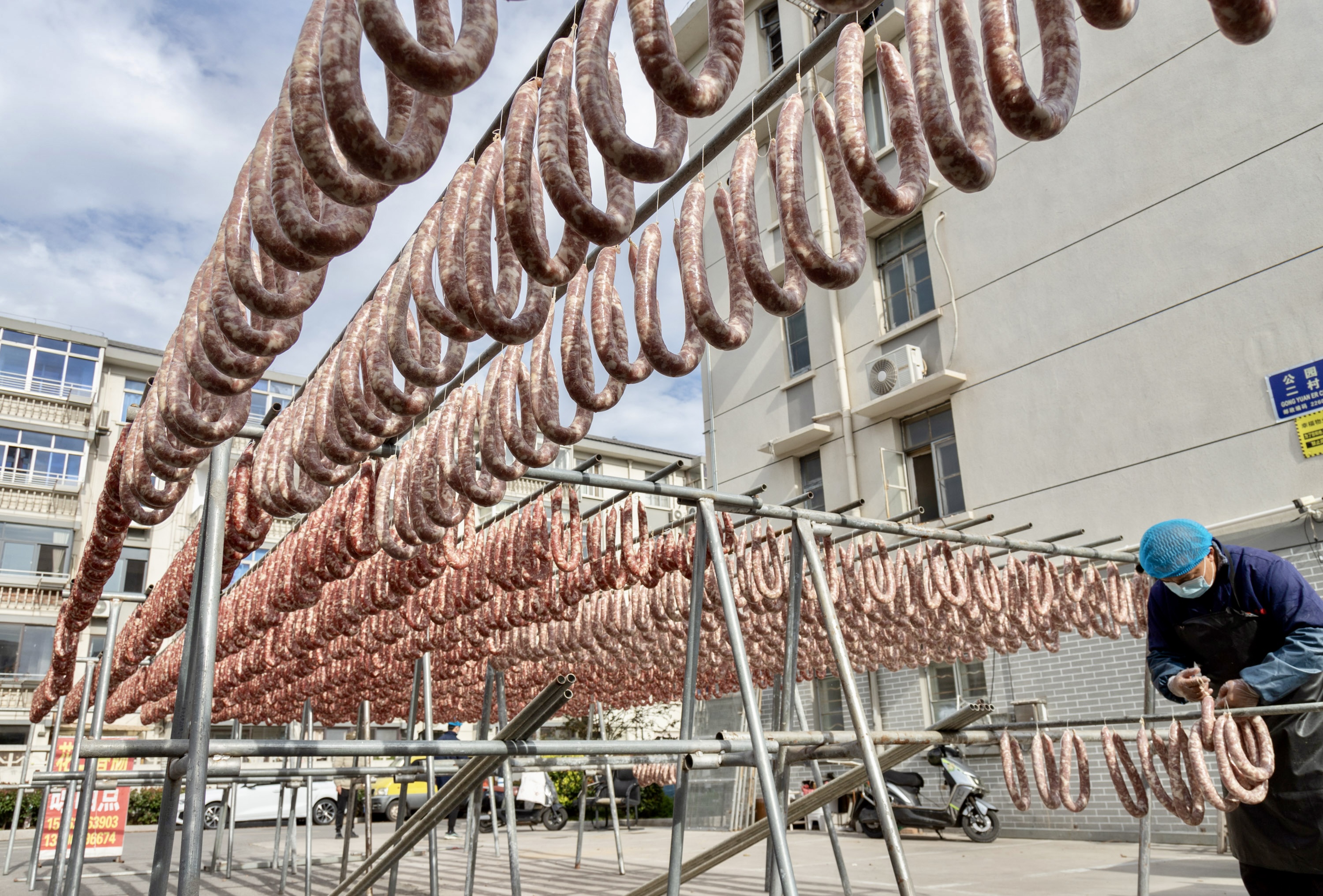 發(fā)布時(shí)間:2025-11-14 15:40:58 編輯:奚柯柯 來(lái)源:南通發(fā)布立冬剛過(guò),街頭香腸香氣初釀,用獨(dú)有的煙火氣與生命力,勾勒出通城初冬最美的模樣。11月13日,記者在位于崇川區(qū)唐閘鎮(zhèn)街道的花二香腸加工店看到,店內(nèi)五六個(gè)師傅忙著制作香腸,店外顧客盈門(mén),鮮紅的肉腸已掛滿(mǎn)曬桿,吸引了不少食客前來(lái)選購(gòu)。