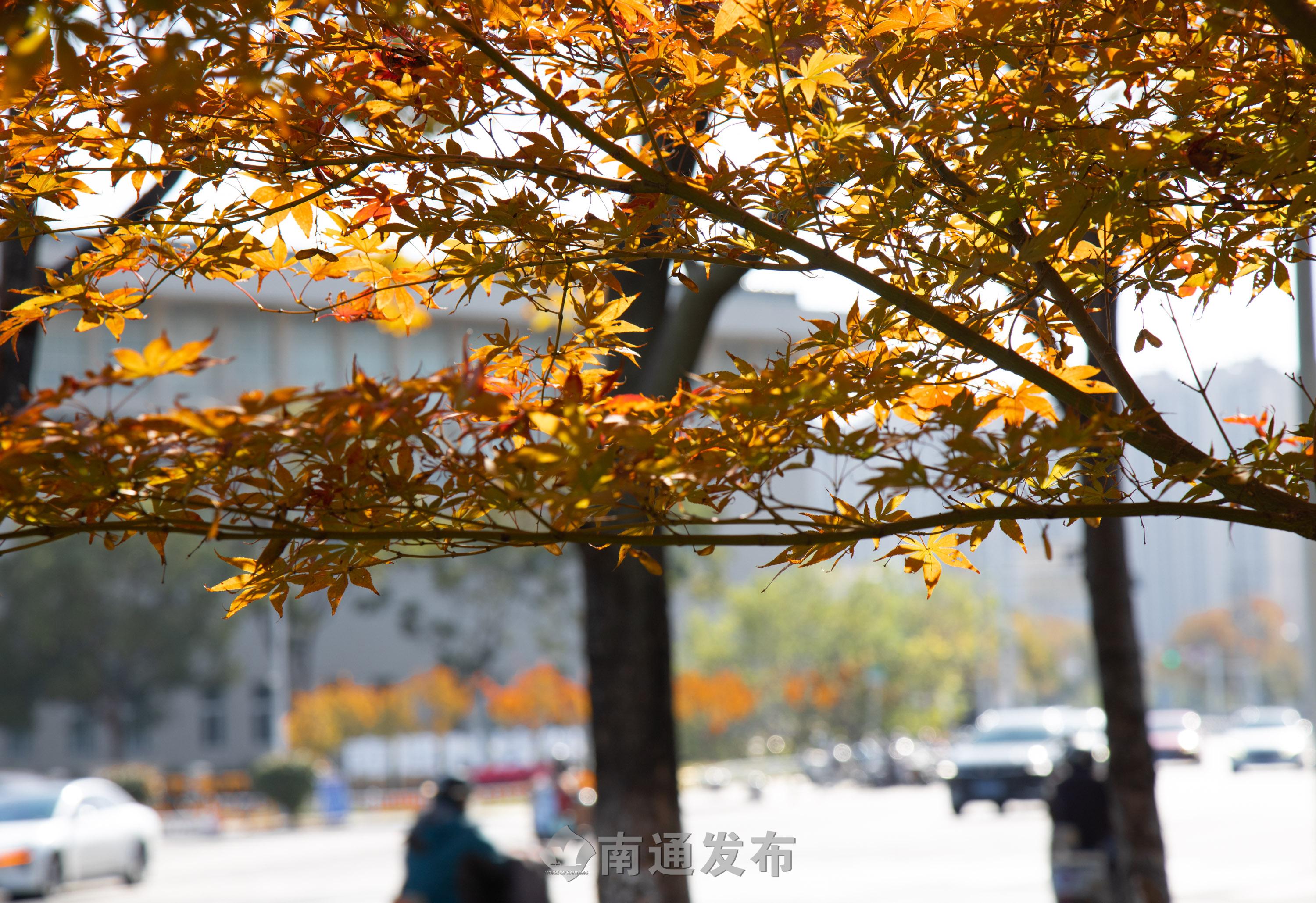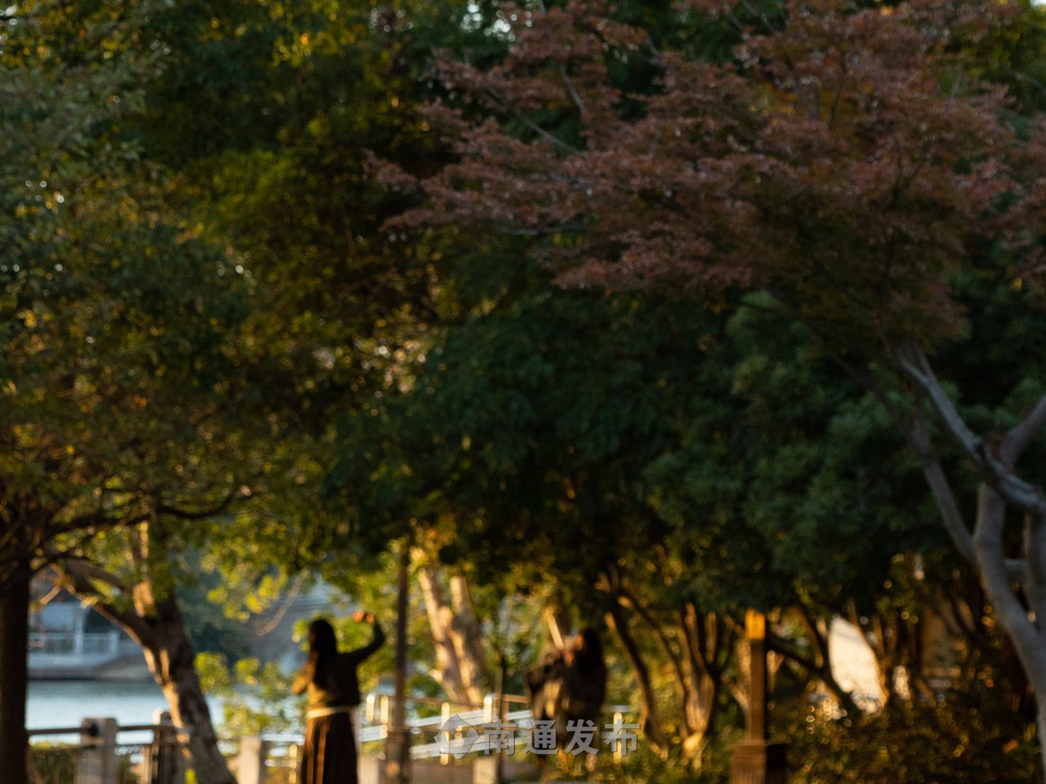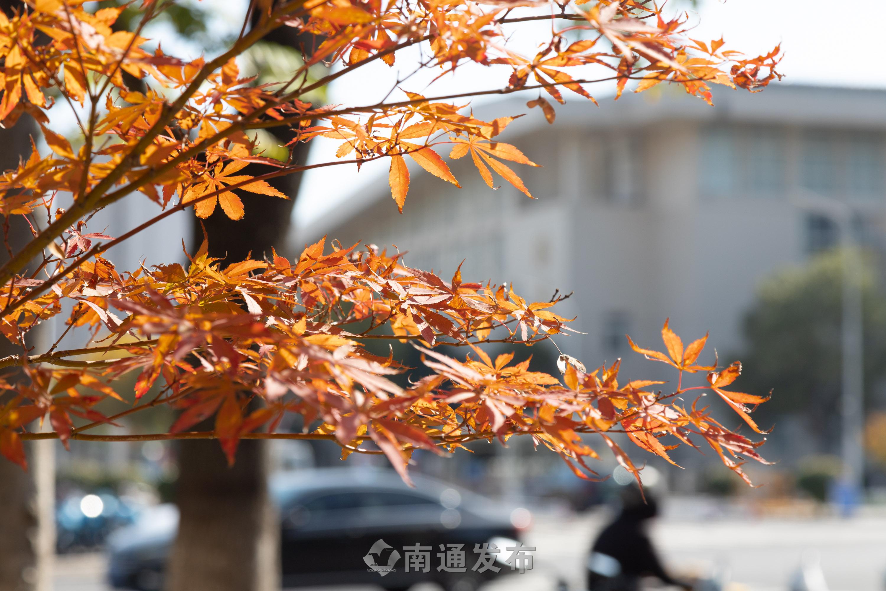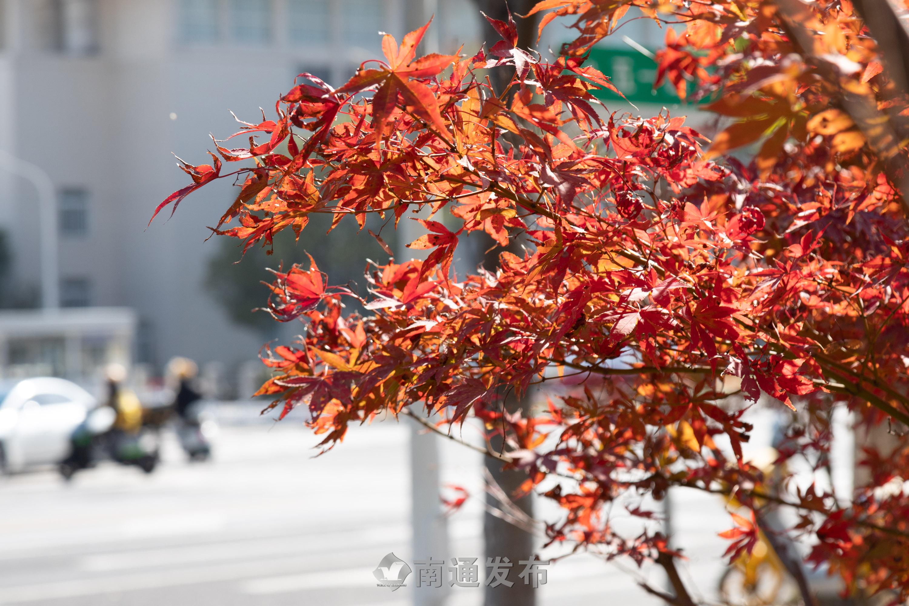 最近,隨著氣溫下降、晝夜溫差加大,市區(qū)各景觀帶內的楓樹葉開始變紅,逐漸進入觀賞期。11月19日,記者在濠河景區(qū)拍攝到,火紅、橙黃、黃綠色的楓葉層層疊疊、由內而外暈染開來,好似一幅唯美的油畫,裝點通城街頭。