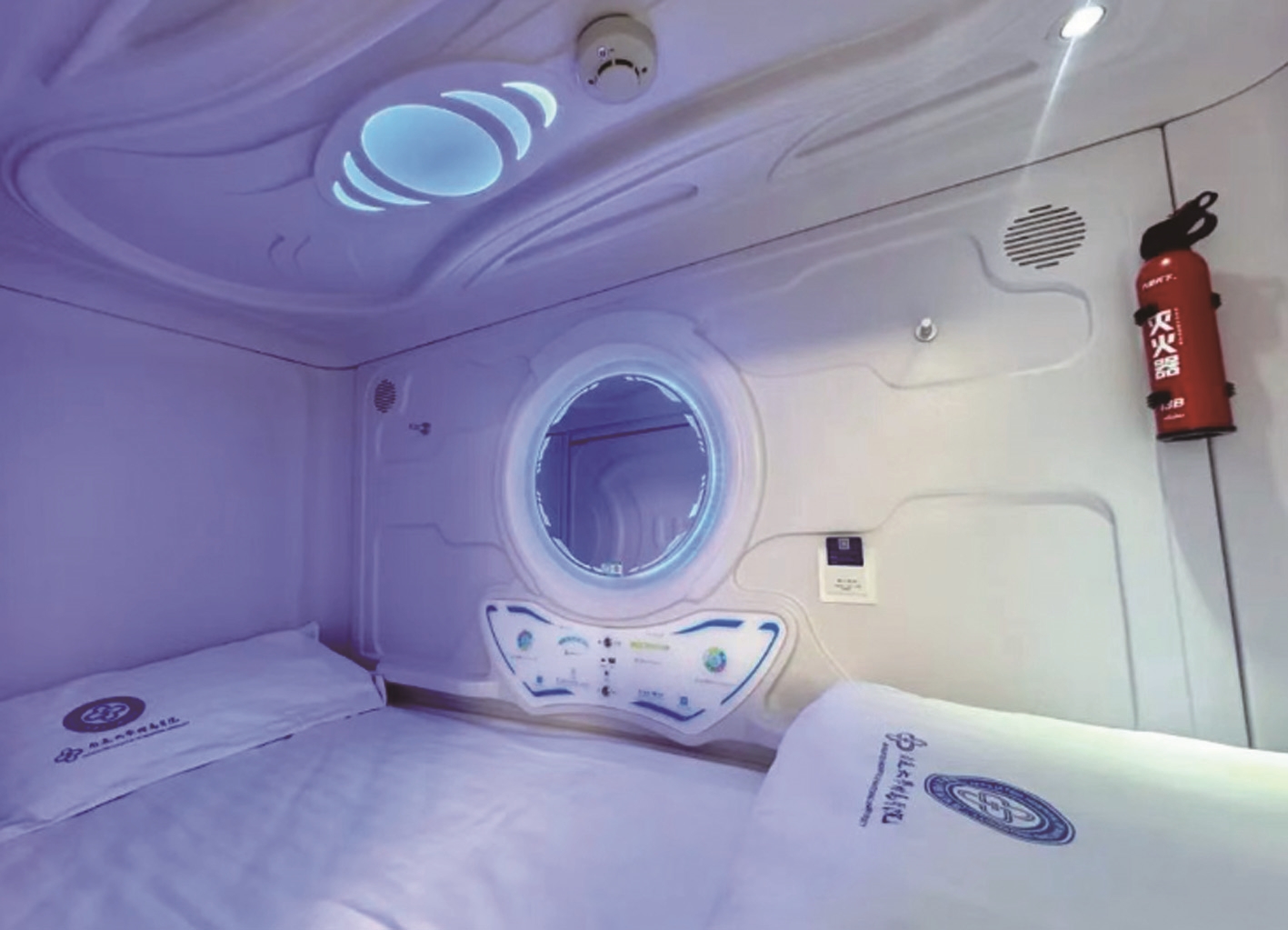 休息驛站內(nèi)的“太空艙”內(nèi)部空間設(shè)計合理,最大尺寸為長2.2米、寬0.9米、高1.6米。每個艙內(nèi)被褥整潔,設(shè)施完善,配備了LED照明鏡、閱讀燈、USB充電口、換風(fēng)循環(huán)系統(tǒng)及空氣凈化系統(tǒng),充分考慮到使用者的舒適與便利。同時,為確保安全,艙內(nèi)還安裝了滅火器、煙霧報警器等消防設(shè)施。醫(yī)院還安排了專職保潔人員,定期對艙內(nèi)外環(huán)境進行清潔和消毒,并嚴格執(zhí)行“一人一換”的被褥用品管理制度,保障衛(wèi)生條件。