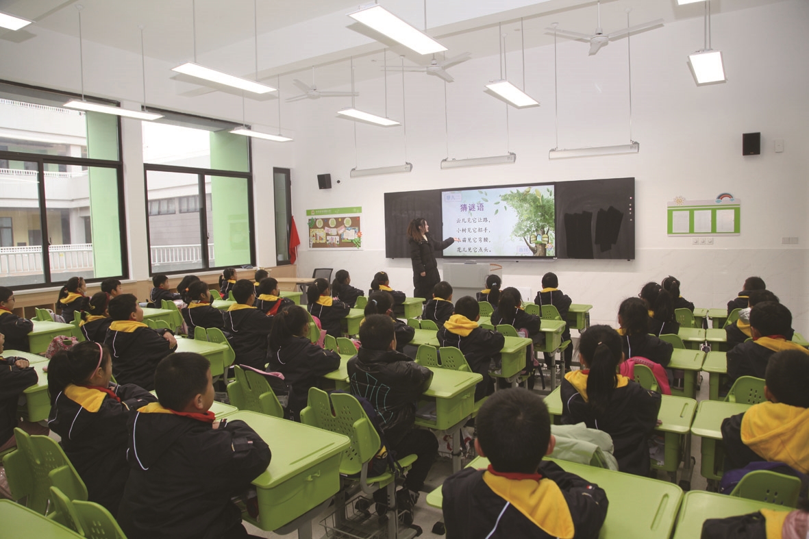 以栟茶小學(xué)為例,“以前我們和幼兒園擠在同一個小院子里。每到放學(xué),門口巷子里堵得水泄不通,車子根本進(jìn)不來。”學(xué)校黨支部書記、校長王曉兵回憶,2016年秋季學(xué)期,學(xué)校整體遷入現(xiàn)址,辦學(xué)條件實現(xiàn)質(zhì)的飛躍;近5年來,校園整體格局已定型,但細(xì)節(jié)仍在持續(xù)完善?!拔覀冴懤m(xù)配齊了2間電腦房、3間美術(shù)室、3間音樂室以及勞動教室、錄播教室等功能室。去年還投入170多萬元完成外墻改造,消除了瓷磚脫落隱患?!?/p>