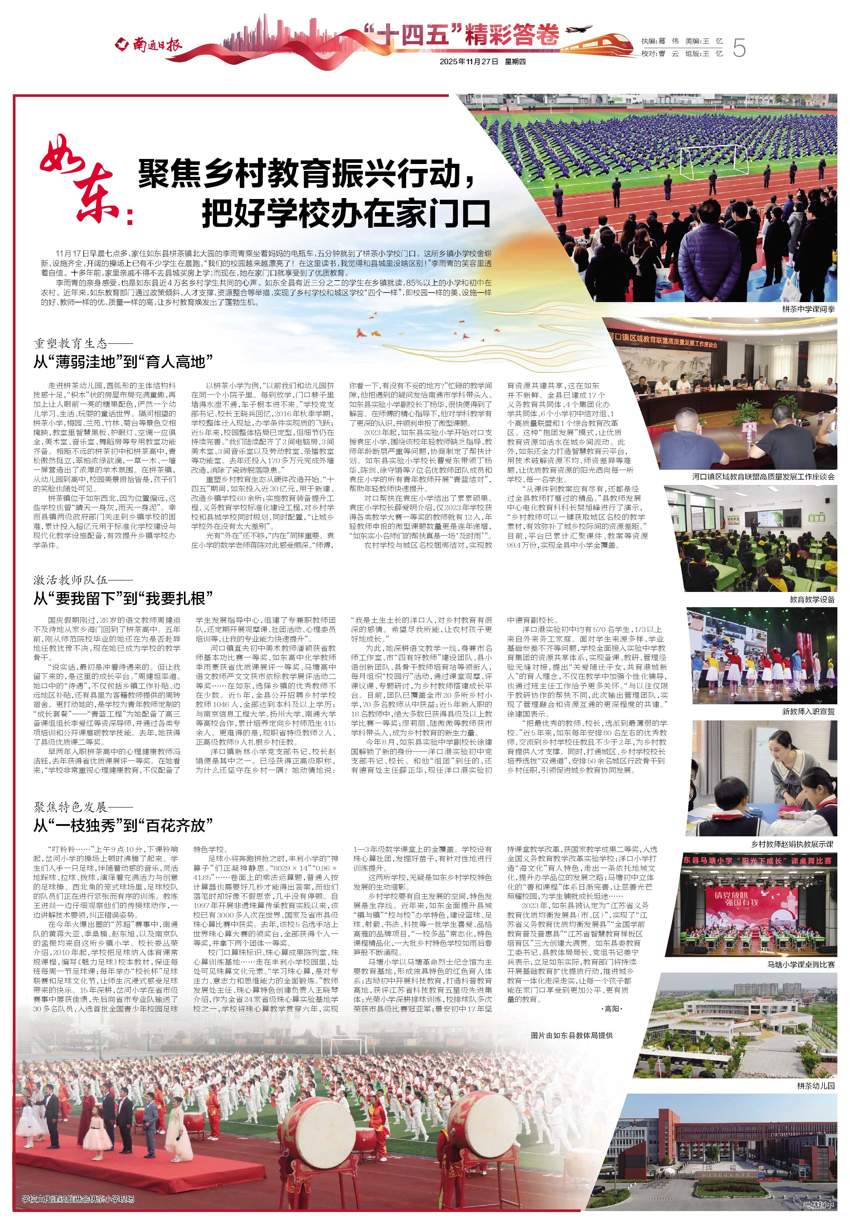 李雨青的親身感受,也是如東縣近4萬名鄉(xiāng)村學(xué)生共同的心聲。如東全縣有近三分之二的學(xué)生在鄉(xiāng)鎮(zhèn)就讀,85%以上的小學(xué)和初中在農(nóng)村。近年來,如東教育部門通過政策傾斜、人才支撐、資源整合等舉措,實現(xiàn)了鄉(xiāng)村學(xué)校和城區(qū)學(xué)?!八膫€一樣”,即校園一樣的美、設(shè)施一樣的好、教師一樣的優(yōu)、質(zhì)量一樣的高,讓鄉(xiāng)村教育煥發(fā)出了蓬勃生機(jī)。