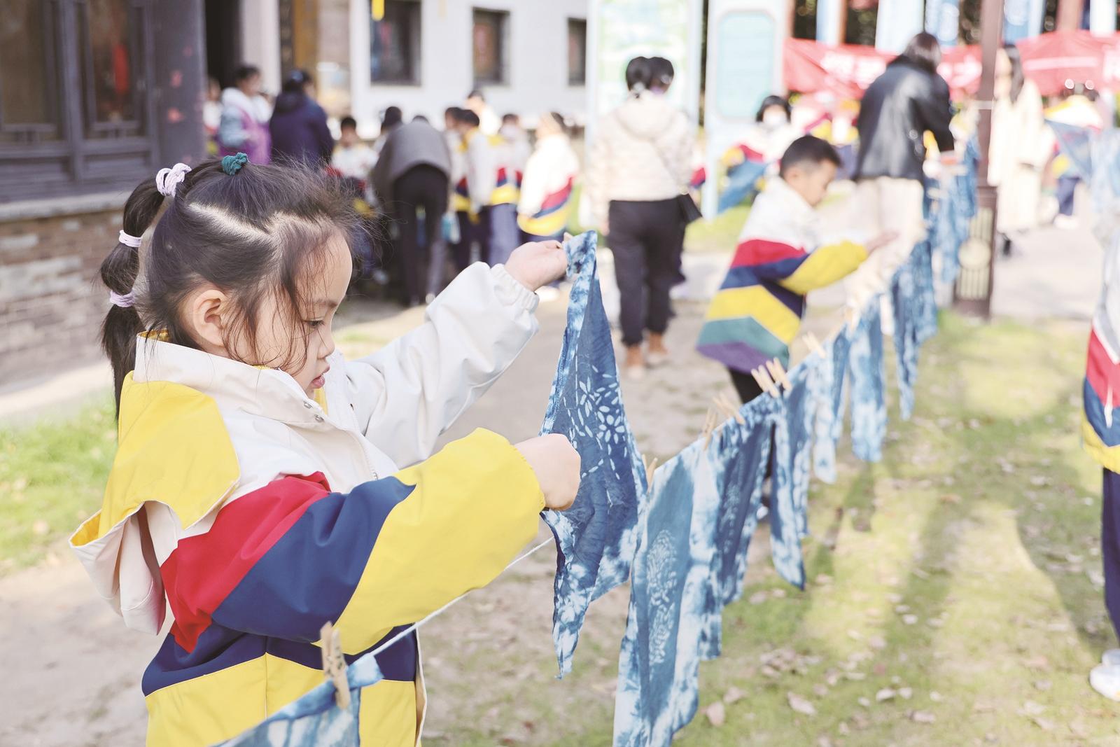 昨日,學(xué)生正在體驗藍印花布的制作。連日來,城中小學(xué)組織一年級新生陸續(xù)走進南通藍印花布博物館,通過實地參觀與動手實踐,近距離感受傳統(tǒng)非遺技藝的獨特魅力。 記者 徐培欽 攝