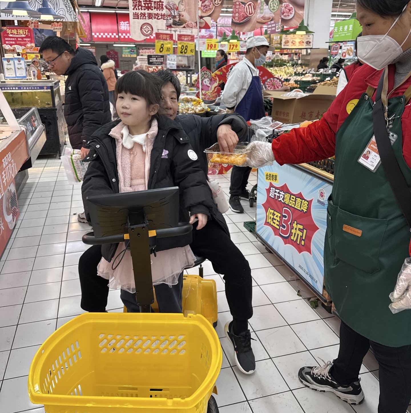 節(jié)日期間全市做好食品保供穩(wěn)價(jià)工作,保障了貨源充足與價(jià)格穩(wěn)定。在大潤(rùn)發(fā)深南路店,商家通過(guò)試吃、抽獎(jiǎng)等方式,吸引市民購(gòu)物。時(shí)令果蔬黑塌菜、草莓等,受到市民青睞。此外,為了適應(yīng)家庭購(gòu)物需要,超市還推出電動(dòng)購(gòu)物車(chē),實(shí)現(xiàn)“駕車(chē)購(gòu)物”新體驗(yàn)。新款購(gòu)物車(chē)既方便承載購(gòu)物袋與兒童,車(chē)上大屏又能輔助找貨,提高購(gòu)物效率的同時(shí),又讓市民享受到了溫馨的親子時(shí)光。