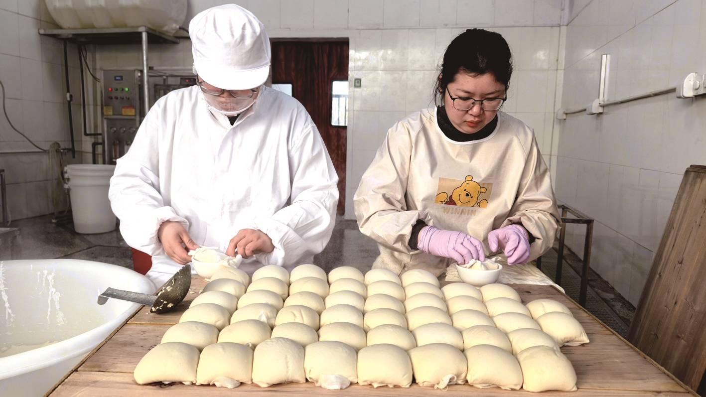 昨天,在海安市孫莊街道祖師廟村的“共富工坊”里,村干部和手藝人在趕制、包裝“仁橋豆腐”,及時供應給附近商超、食堂。近年來,海安市因地制宜發(fā)展村級“共富工坊”,吸納周邊村民就近就業(yè),推動集體增富、群眾增收、企業(yè)增效。顧華夏